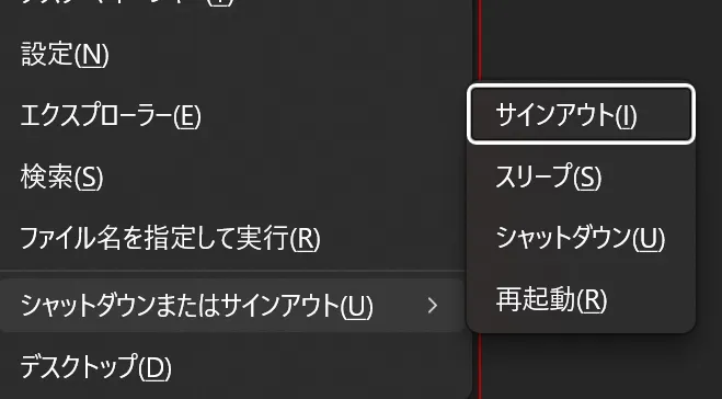 おすすめの使い方は Win + X → U → U でシャットダウンをすることです