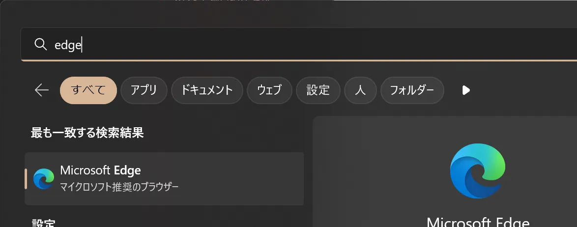 例えば、Win + S を押した後に edge と入力し、 Enter キーを押すと、マウスを使わずにMicrosoft Edge ブラウザーを起動できます