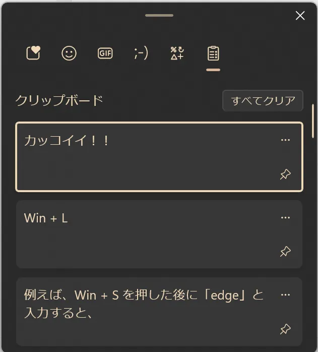 画面は Win + V と共通で、上のタブをクリックして切り替えます